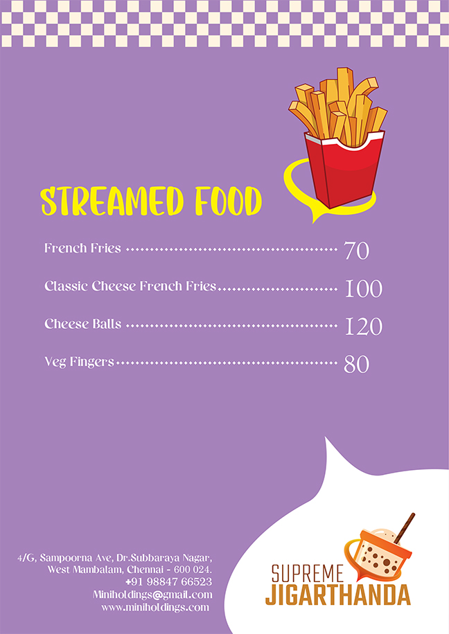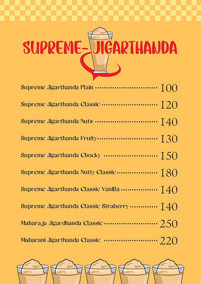 TThere are unstructured Jigarthanda players and few brands and the industry growing at 20 % annually. Supreme Jigarthanda will be an QSR structured food counter which can deliver at high hygiene standards. standards.